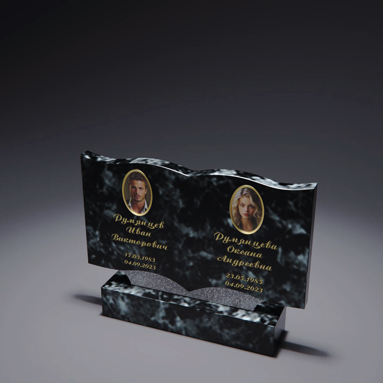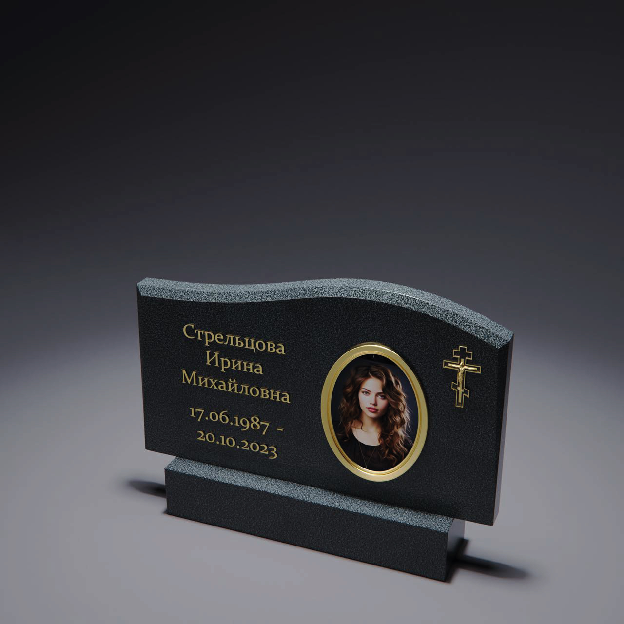 Монументальный памятник в форме креста, выполненный с высокой детализацией. В центре композиции расположена фигура распятого Христа, выполненная в технике глубокого рельефа. Каждая линия креста подчёркнута резьбой, создающей выразительный объём. Нижняя часть памятника установлена на полированное основание с местом для надписи, обеспечивающее устойчивость и гармоничный вид всей композиции.
