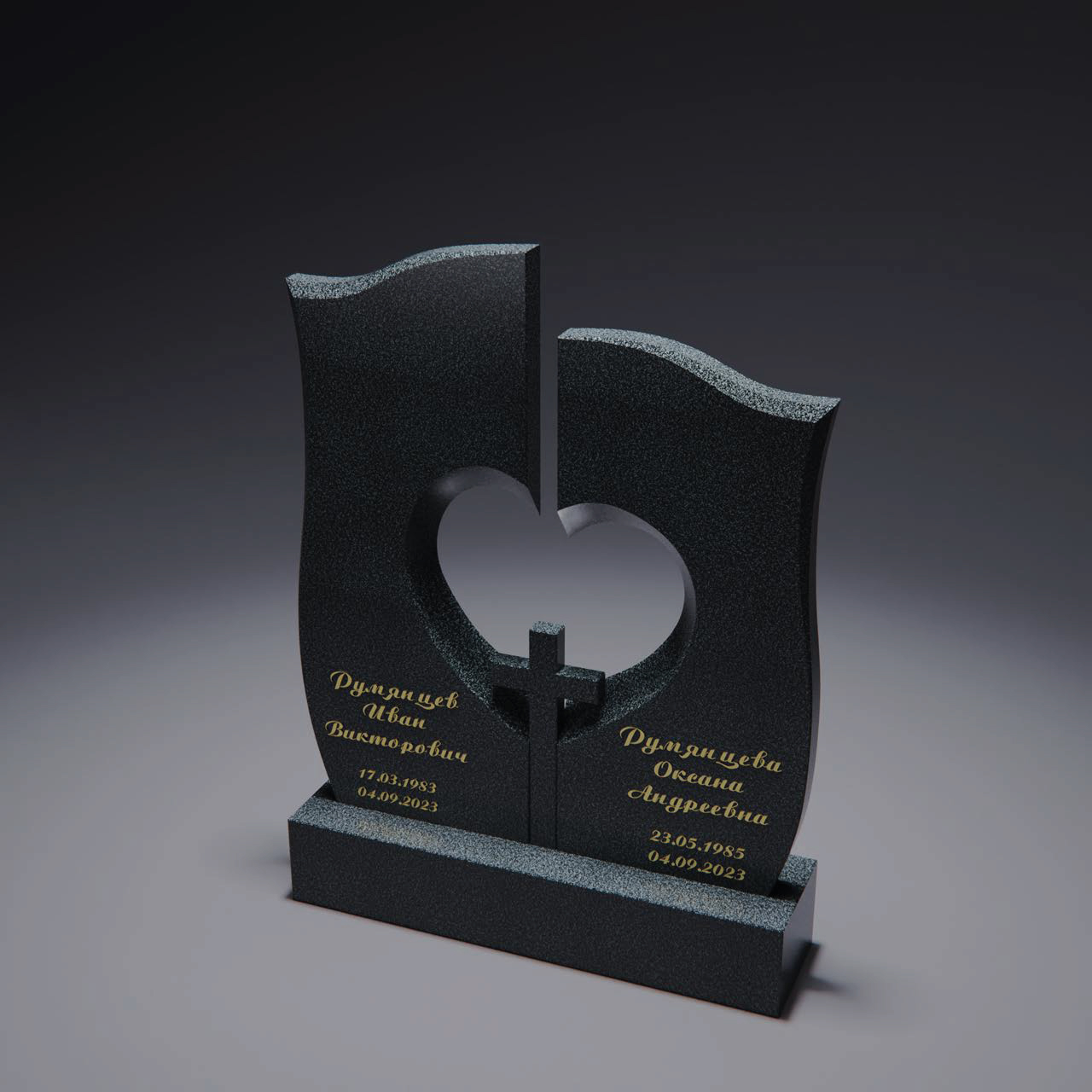 Мусульманский памятник с оформлением и тщательно прорезанными орнаментами в верхней части. Полумесяц расположен в центре арки, обрамлённой декоративной резьбой, символизирующей духовный свет и покой. Боковая грань украшена узором в виде скрученной колонны, что придаёт памятнику выразительность и ощущение монументальности.