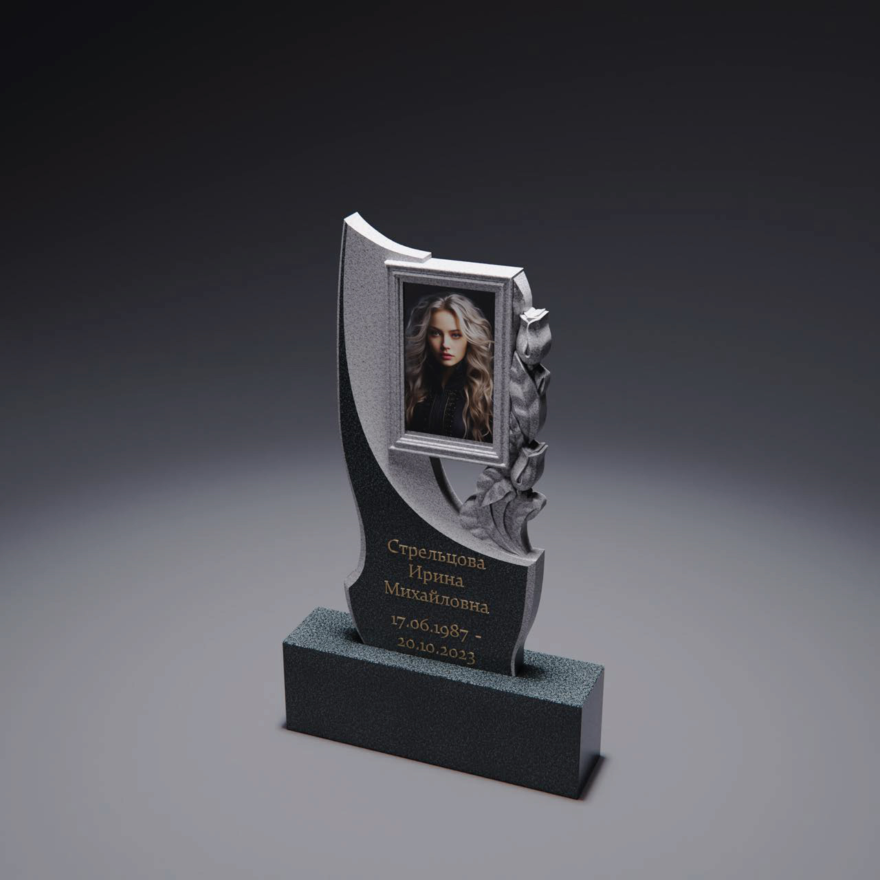 Овальная рамка, оформленная изящными колосьями пшеницы. Каждый колос проработан с особой точностью, а мягкое переплетение ветвей создаёт ощущение естественности и гармонии. В нижней части расположена лента с надписью «Вечная память», аккуратно вписанная в общую композицию.
